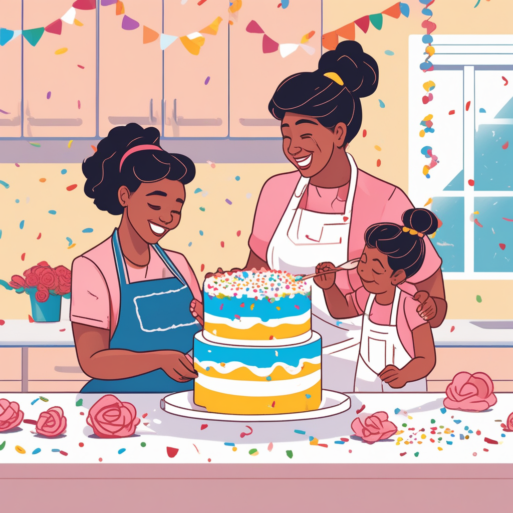케이크를 장식하는 모녀
