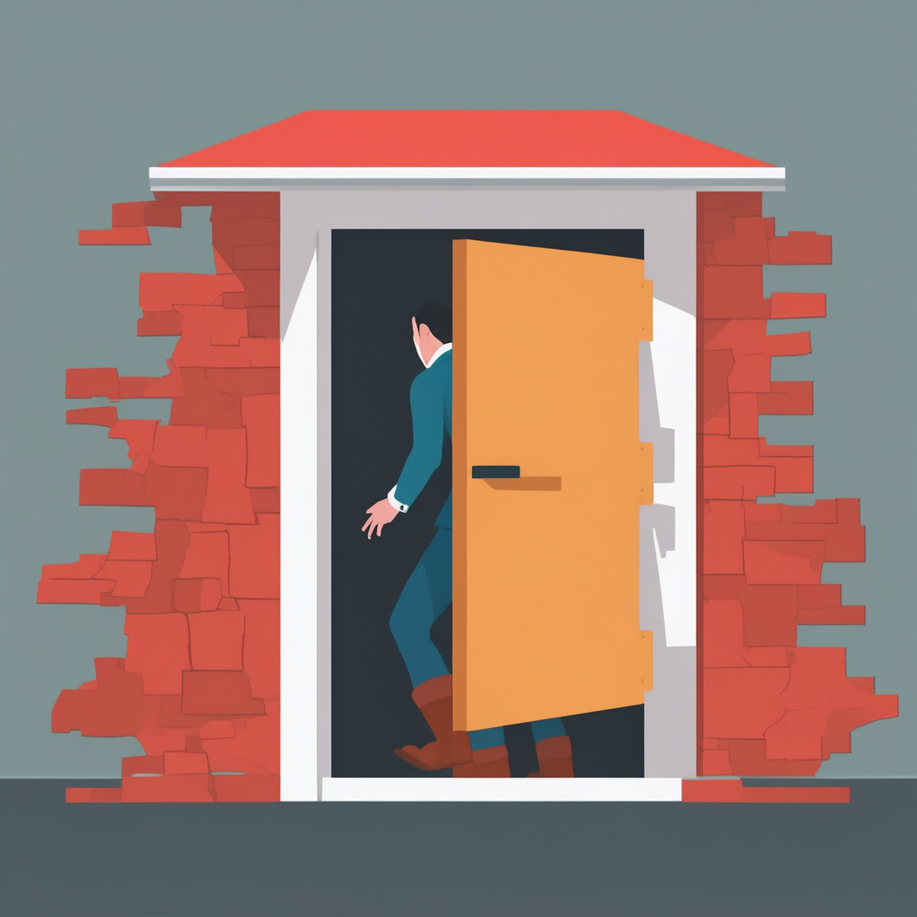 오두막 문을 찍어 내고, 쾅 하고 문을 닫는다!