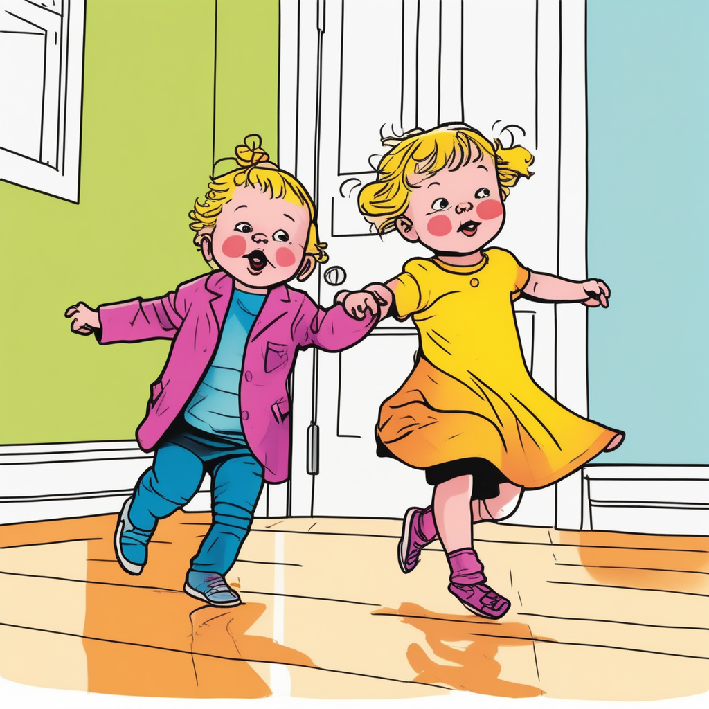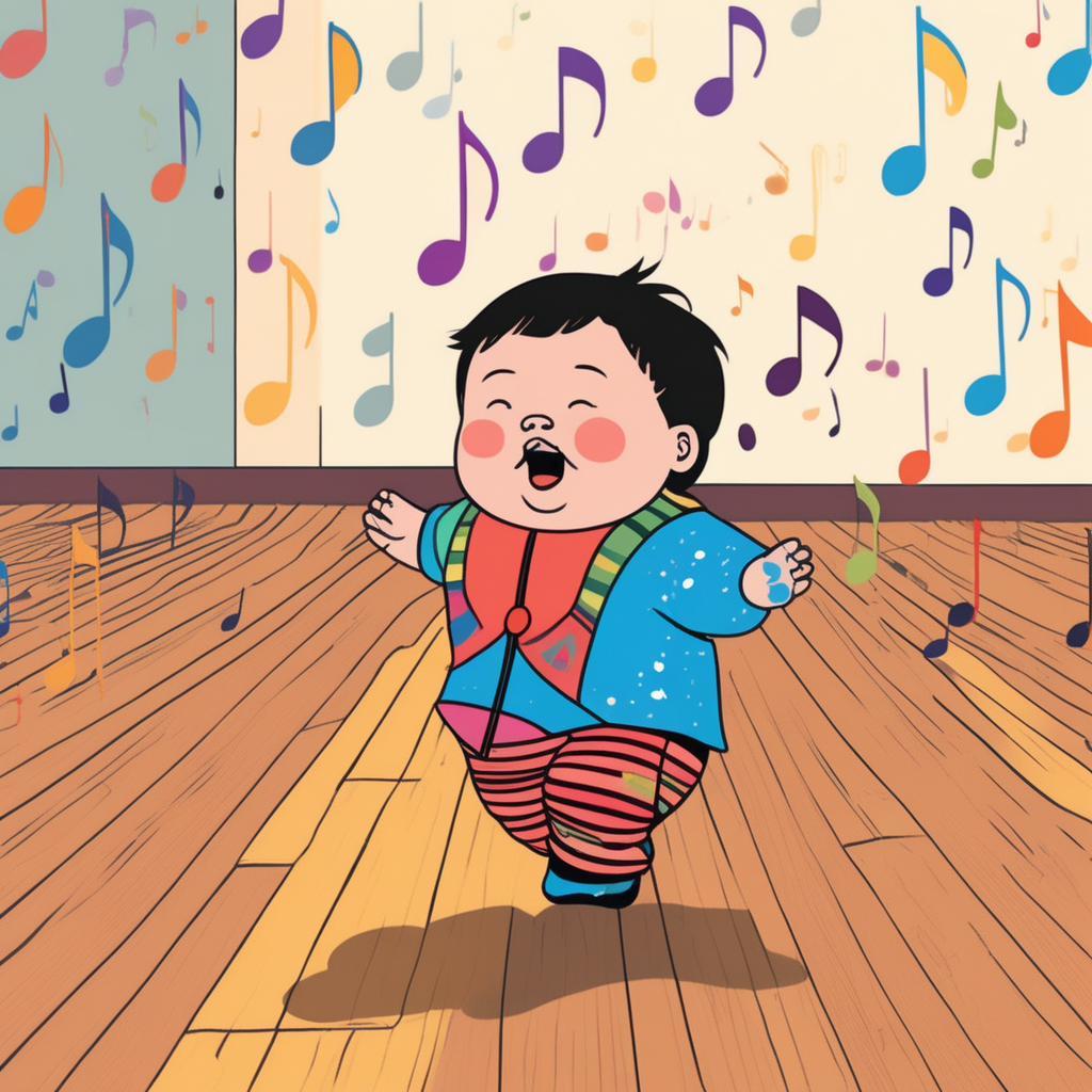Tada-da-da sounds echo as the baby toddles with tiny steps!