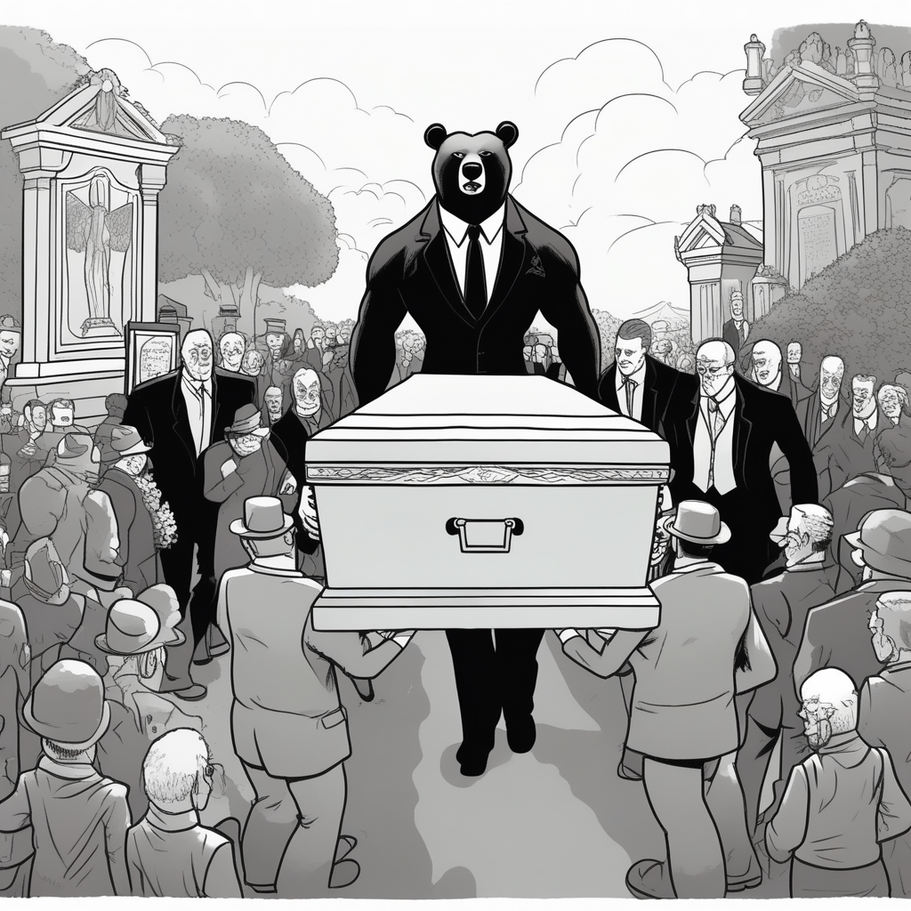Paul and the bear carry the coffin together - pallbearer!
