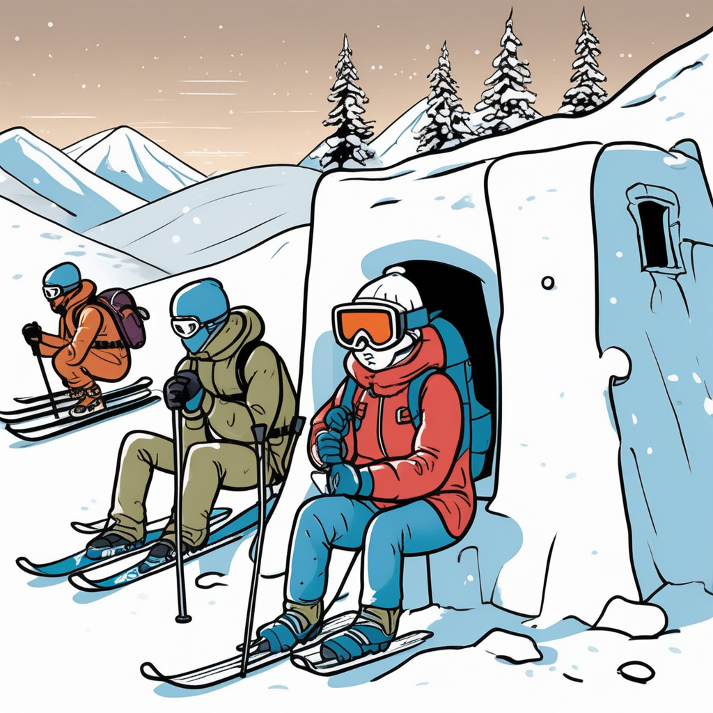 Scheming skier plotting secretly while mumbling (ming-ming) on the slopes!