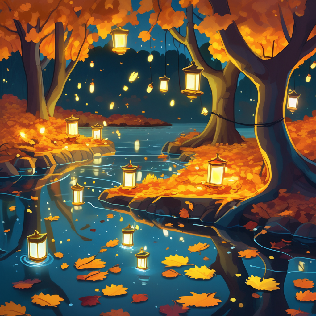 The river keeps ongoing and flowing, while fireflies stay glowing