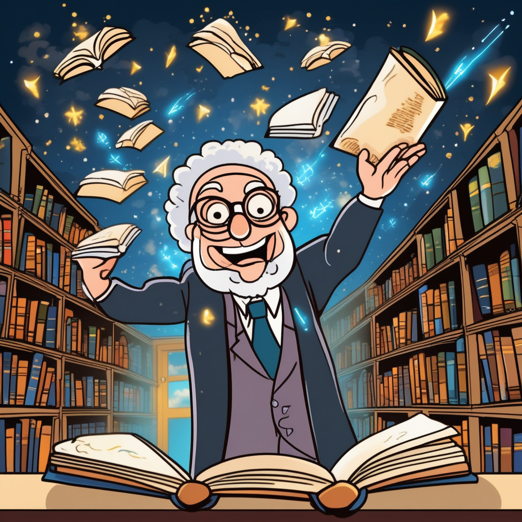 The knowledgeable professor is literally 'flying knowledge' to students!