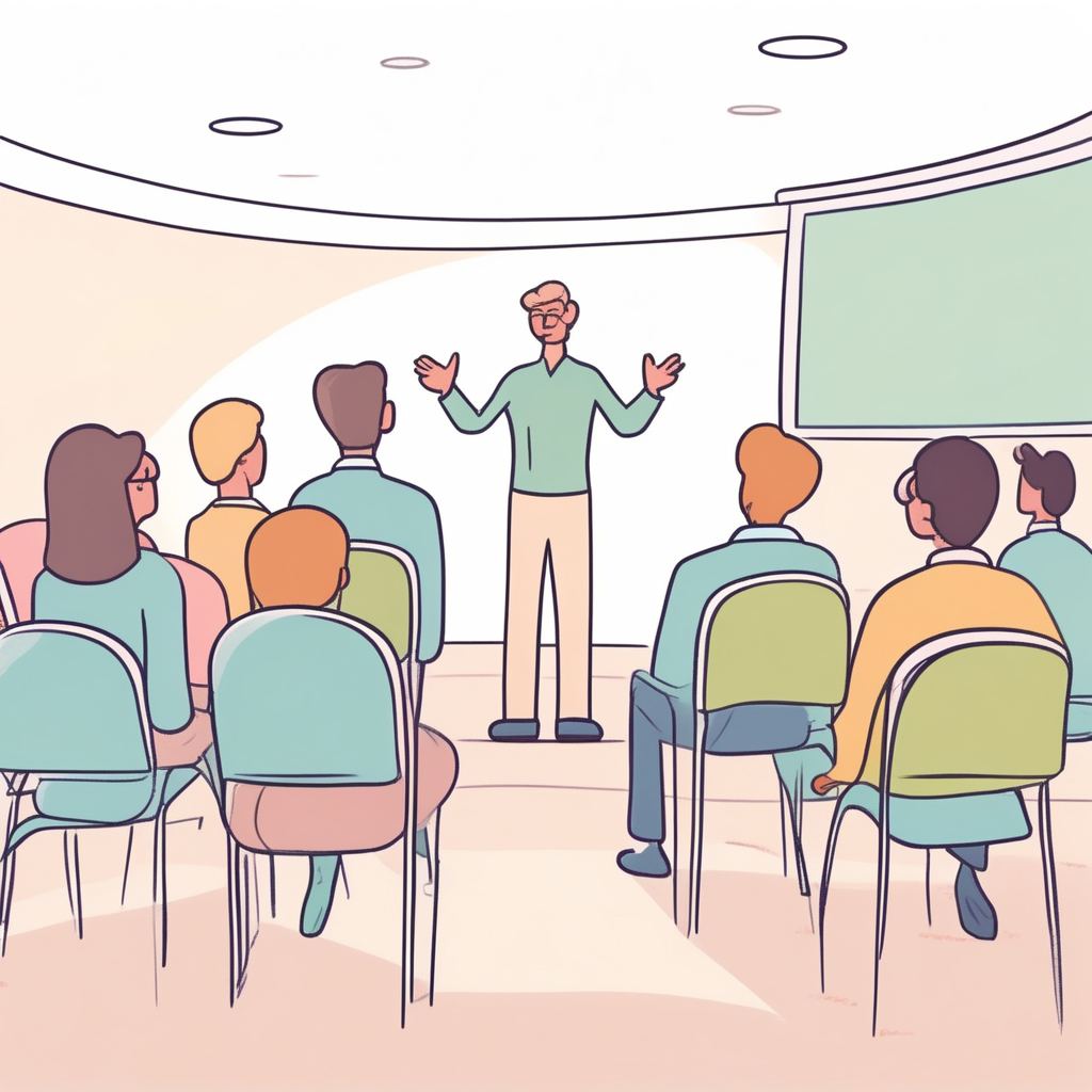 an educational talk to an audience, especially students