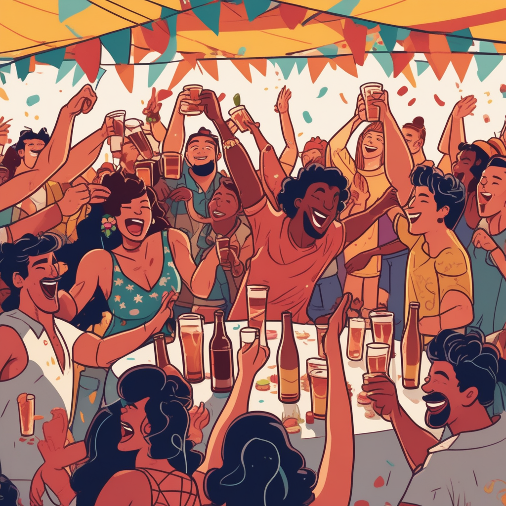 술에 취한 광란의 축제의; 거칠고 방탕한 축하의