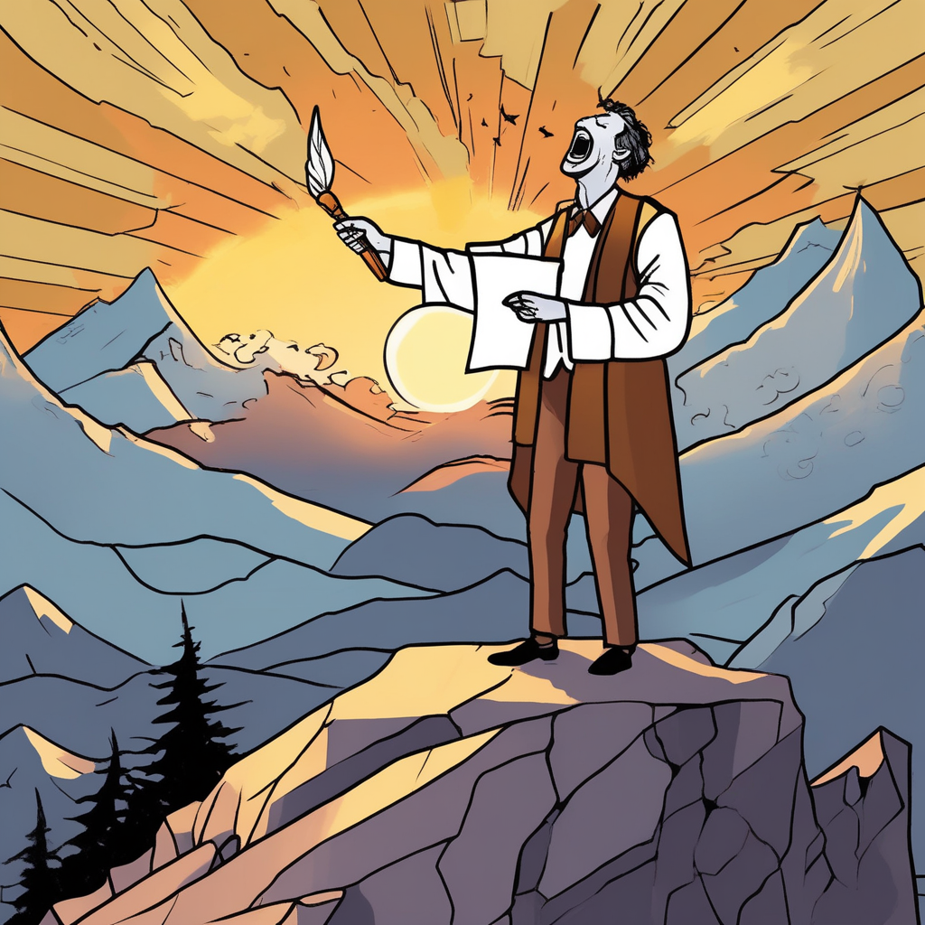 오! 대단한 석양이야! 찬양시를 써야겠어!