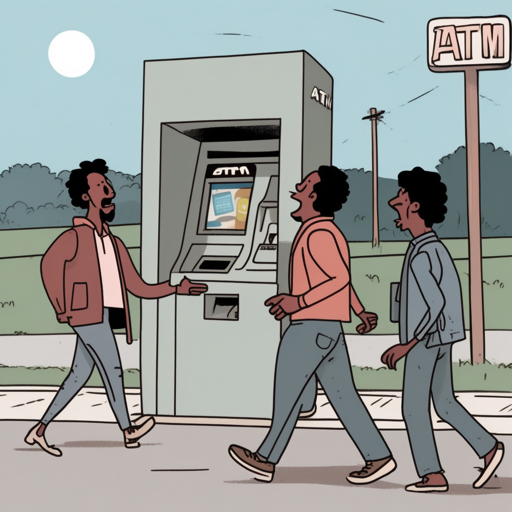 Walking 'with' friends on the 'road', but backing away alone to withdraw money!