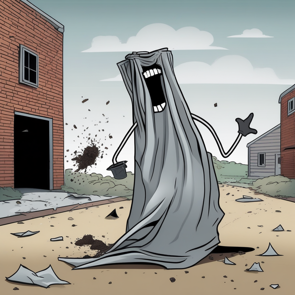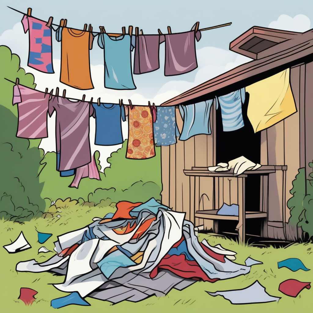 랙에 걸린 걸레들이 바람에 날아다녀요! 래그(rag)를 잡아라!
