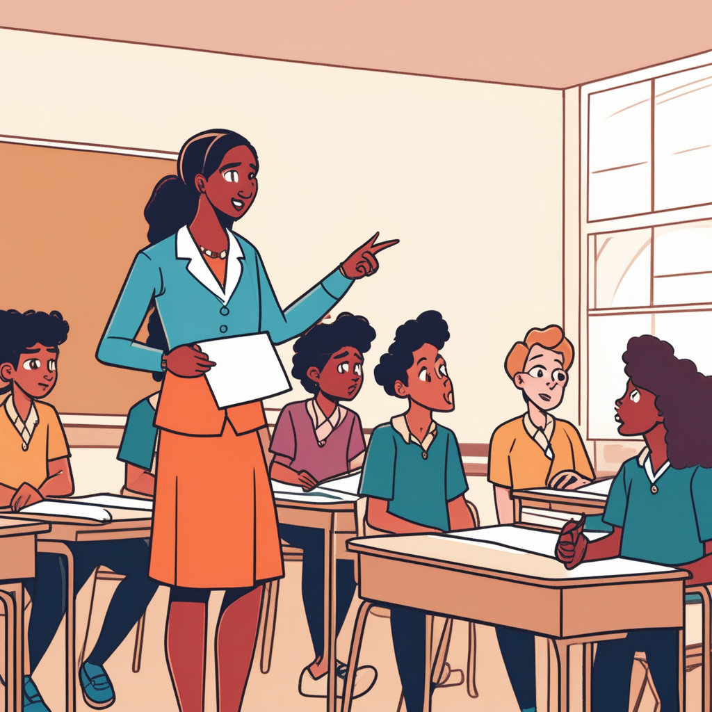 선생님이 학생 작문에 대해 논평하는 모습