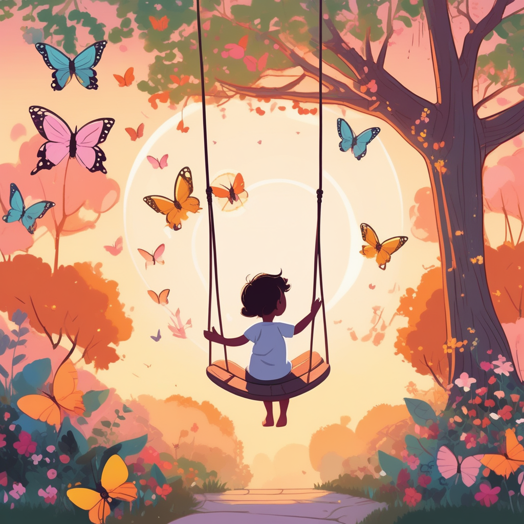 On a swing chair watching butterfly wings dance in rings of light