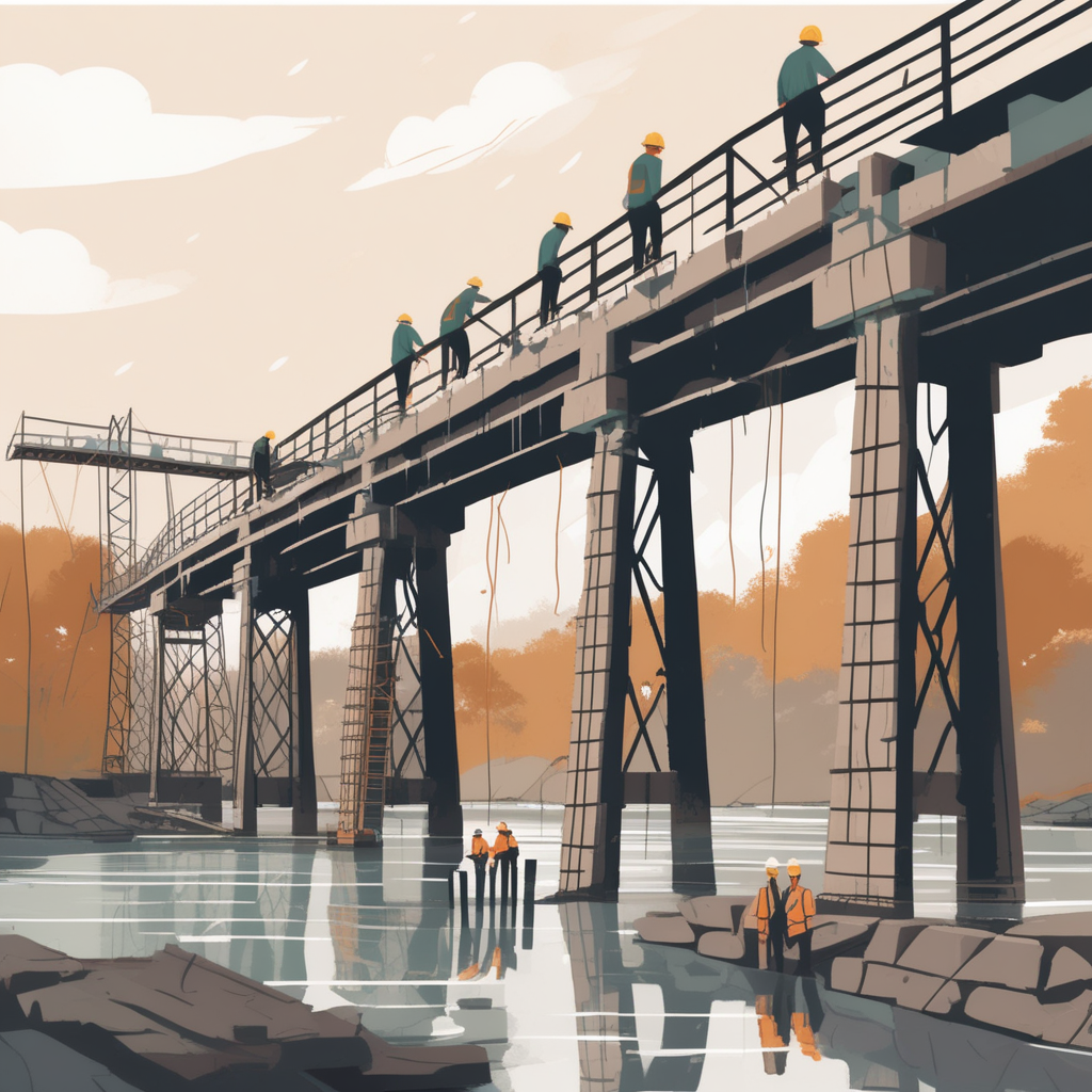 Existing bridge resisting, workers assisting!
