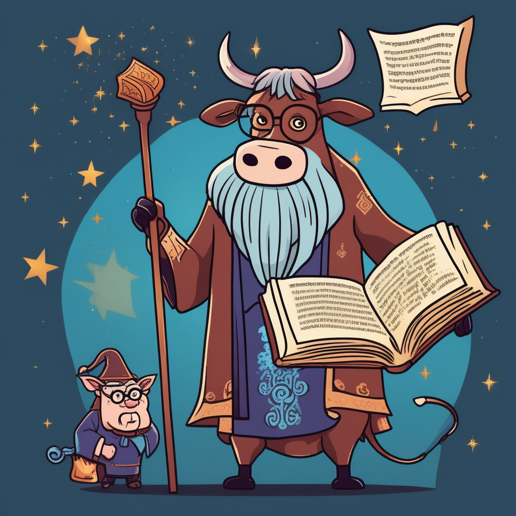 The cow standing and trying to learn Russian needs a sorcerer's help!