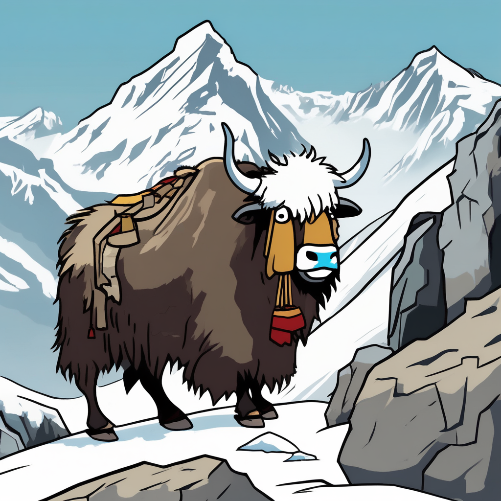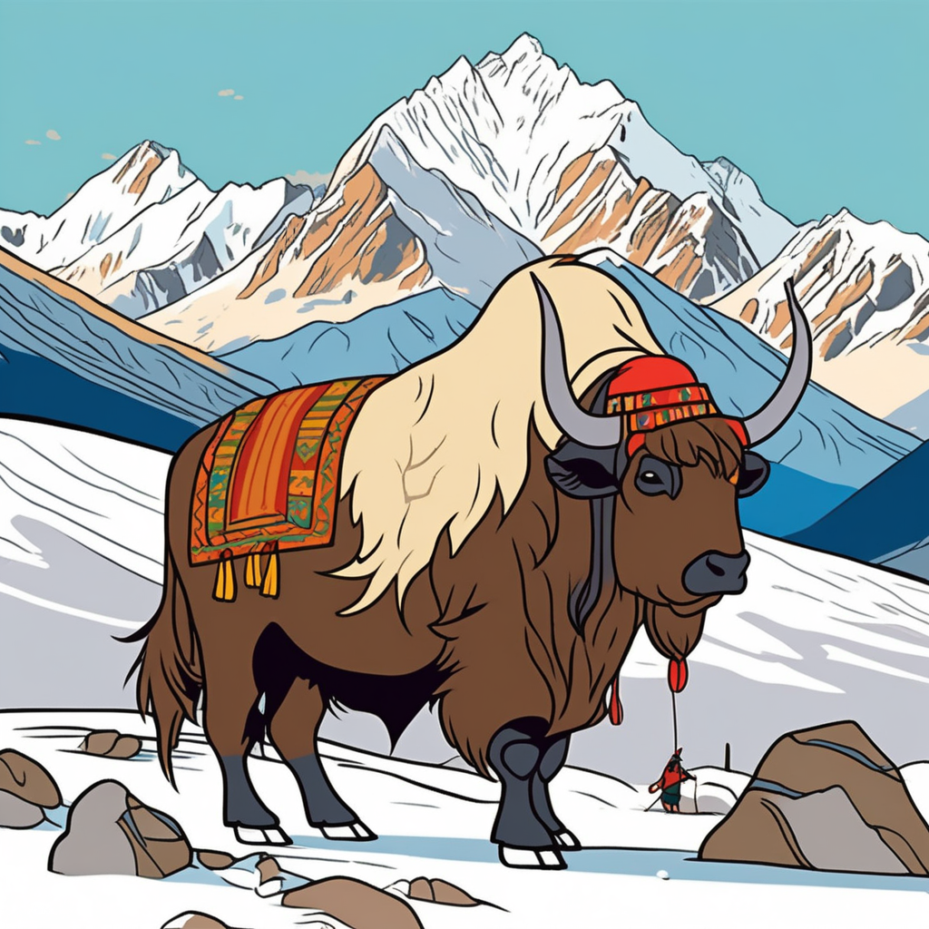 The yak carries its pack on its back!