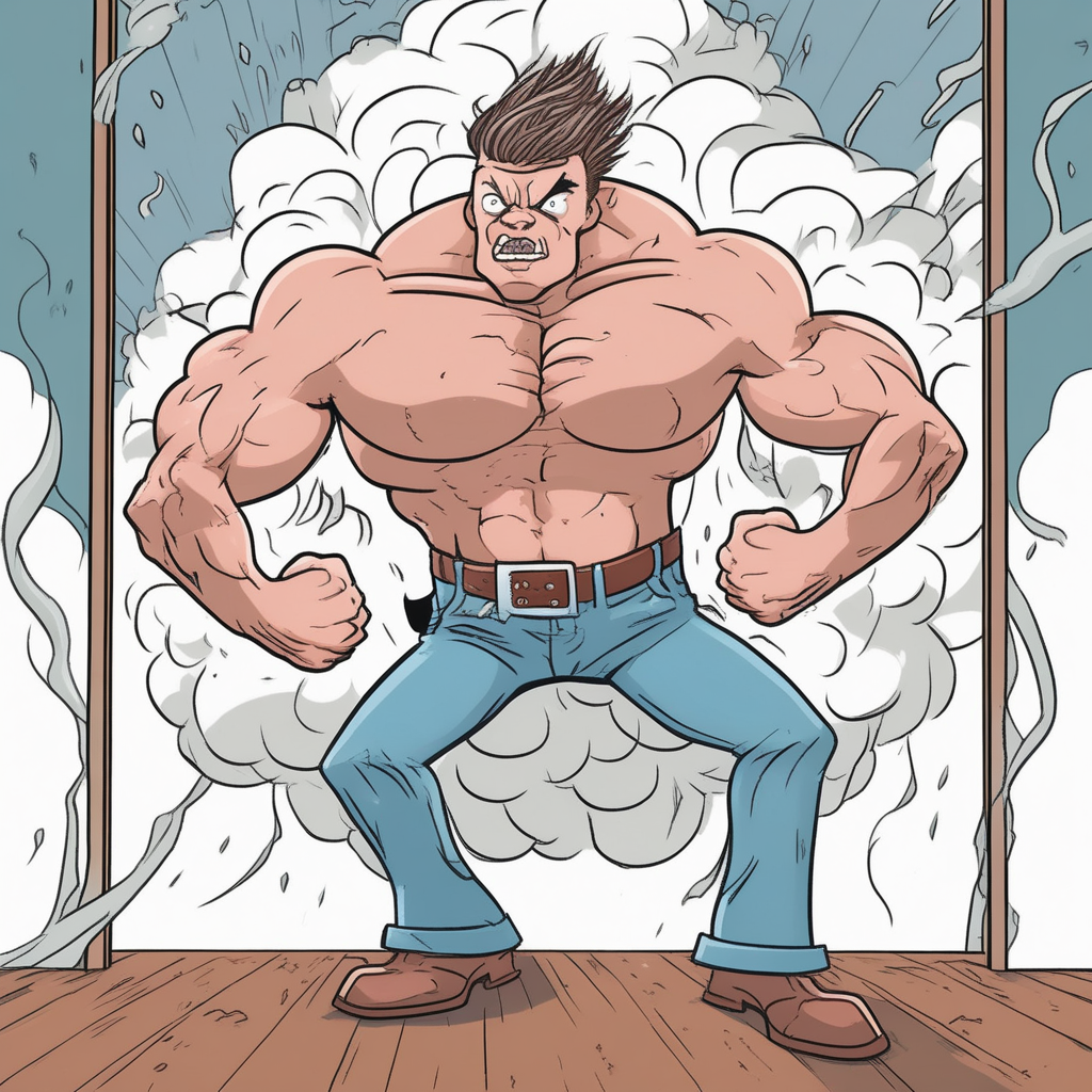 '머치즈모'는 '머치(much) + 치즈 + 모(more)'로 연상! 치즈를 너무 많이 먹어서 힘이 세진다고 으스대는 남자의 모습을 떠올려보세요.
