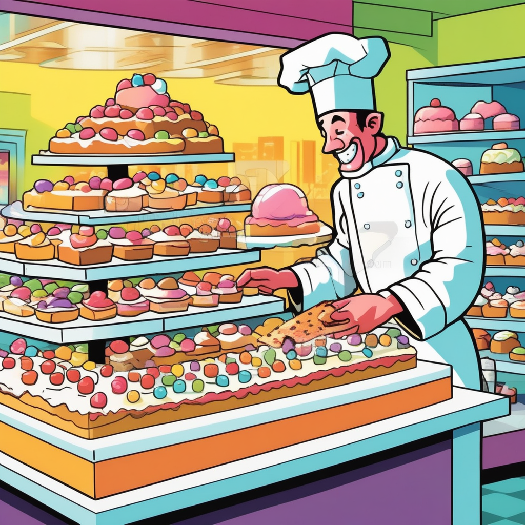 "The chef accidentally dropped the icing bowl and created modern art on the kitchen floor."