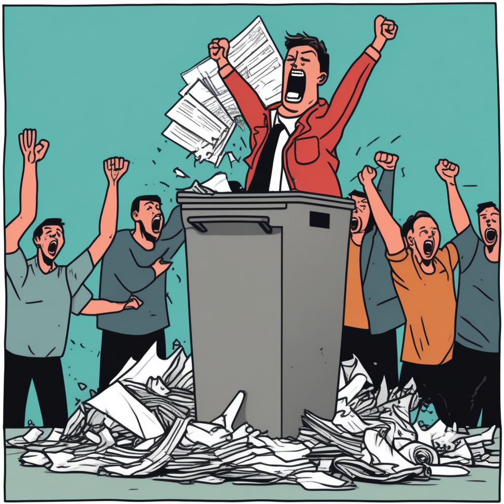 웨이! 버려! 책임은 내가 질게! 면제서는 휴지통으로!