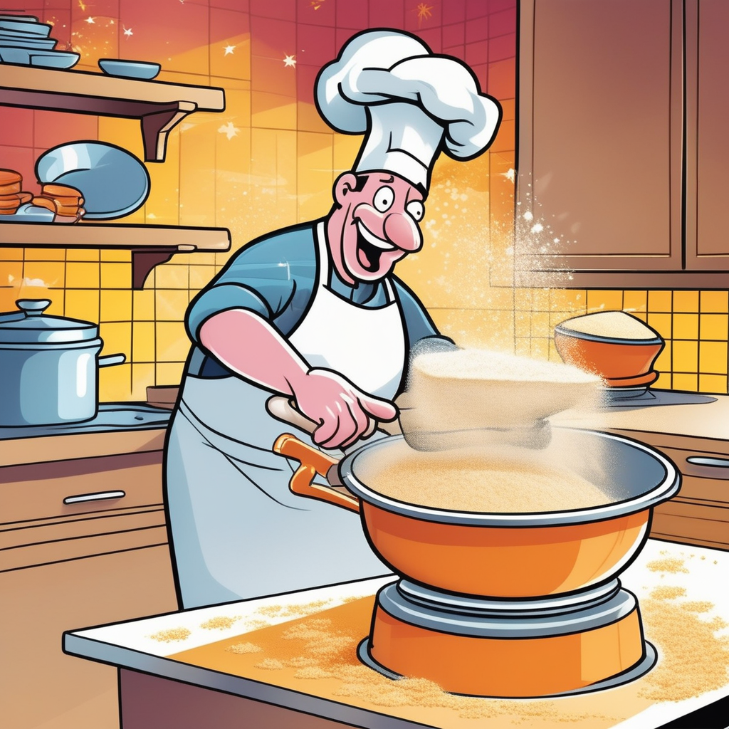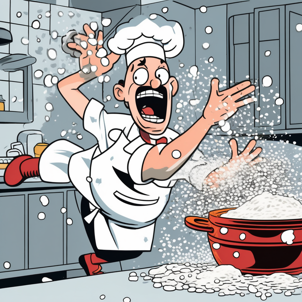 Urgently sifting flour from the frying pan!