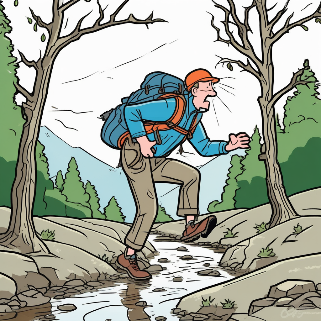 미끄러져 넘어질 뻔, 나무를 꽉 잡아!