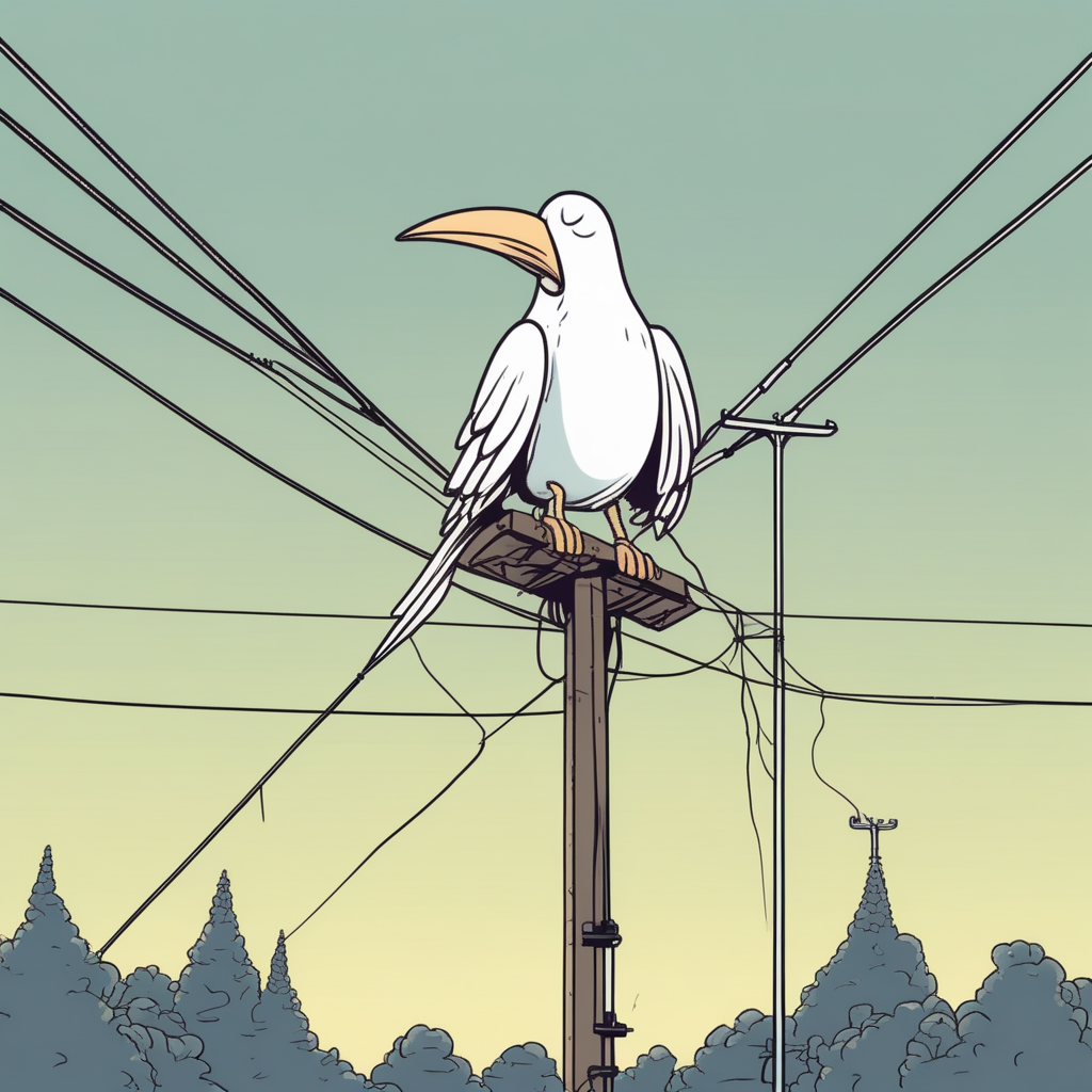새가 기운없이 앉으니 전선도 축 처져버렸네!