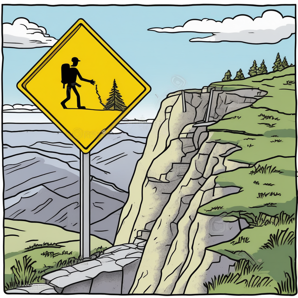 경고판을 보고 돌아서니, 안전한 길이 더 좋구나!