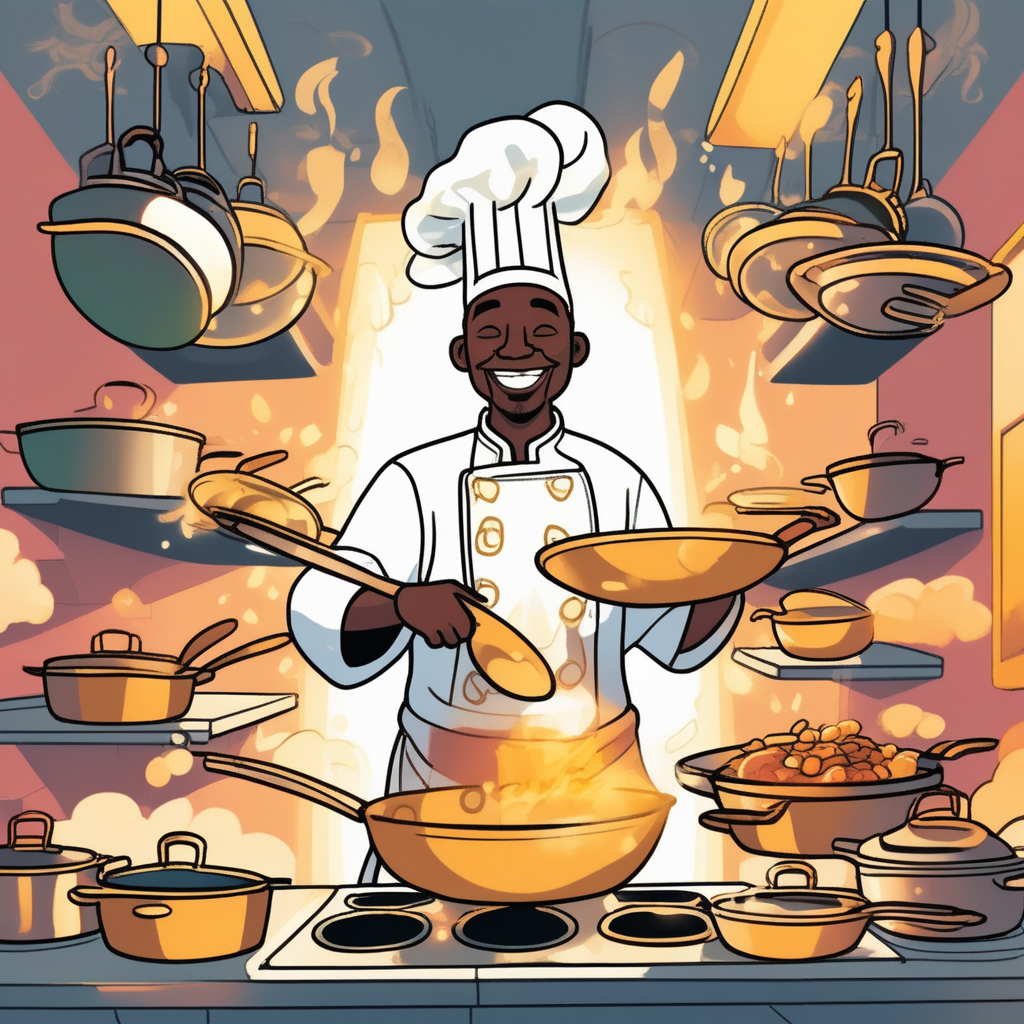 프라이팬을 미리미리 준비하는 하늘의 요리사! 신의 섭리로 모든 걸 미리 준비해주신다!
