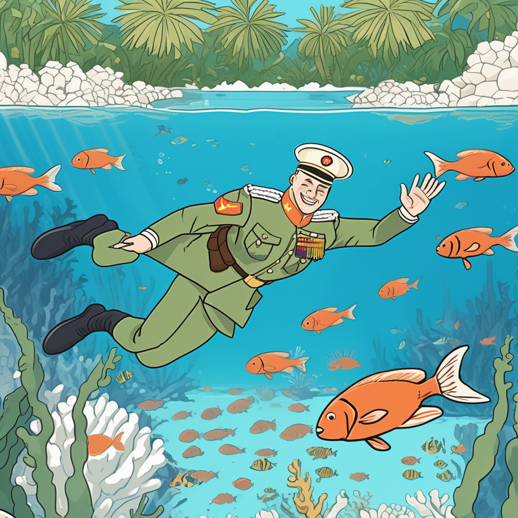 Russian soldier (러군) relaxing in a beautiful lagoon!