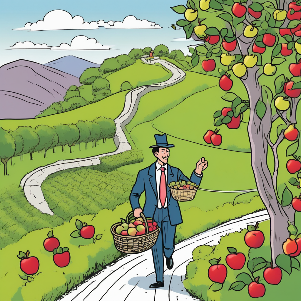 정장 입고 과일 든 채, 구불구불 길을 따라!