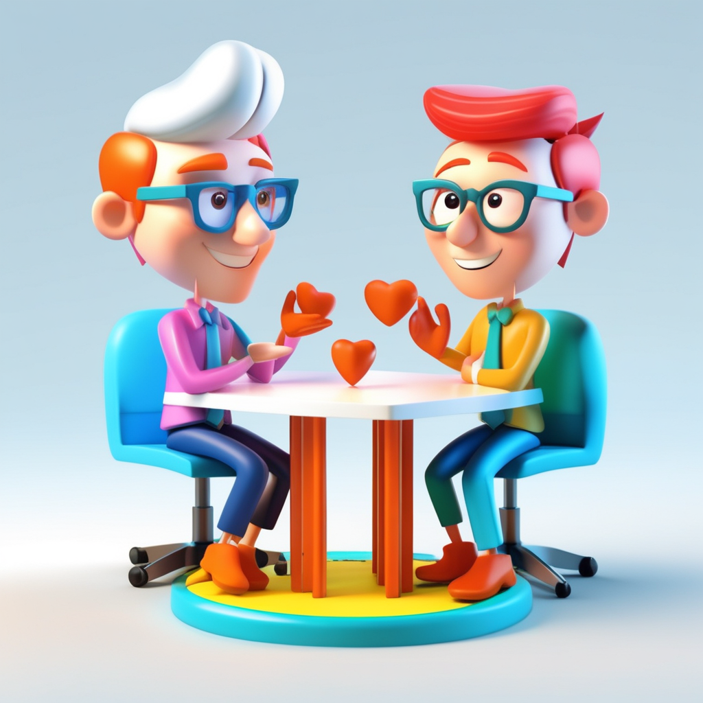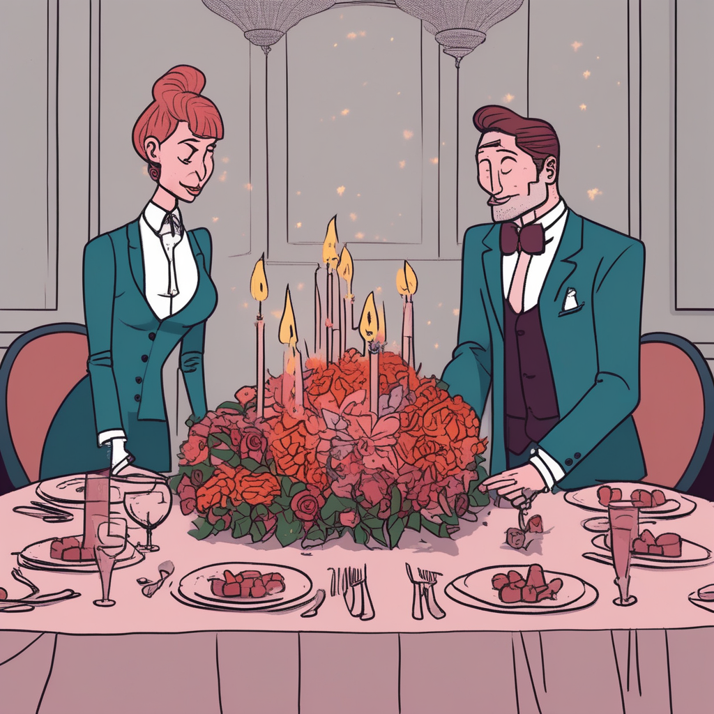 The matchmaker literally 'sets up' two people on the table - perfect dating setup complete!