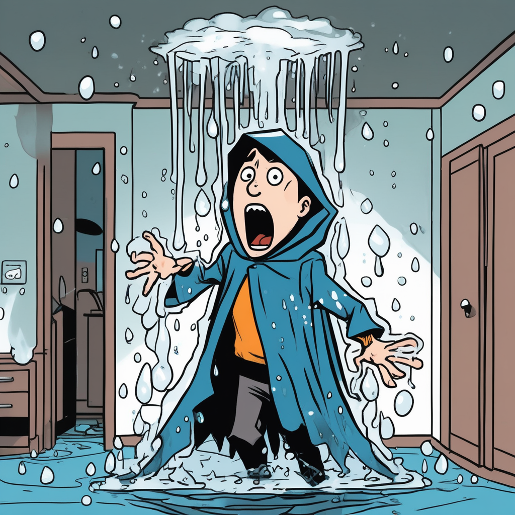 슈퍼맨이 리크(새는 물)를 발견하고 슈우우우리이이익! 비명을 지른다!