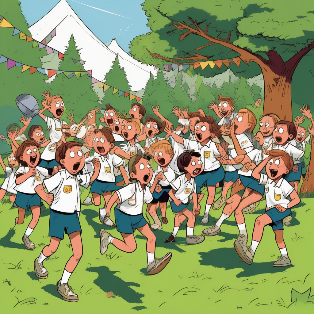 스캔들 캠프에서 아이들이 재빠르게 뛰어간다!