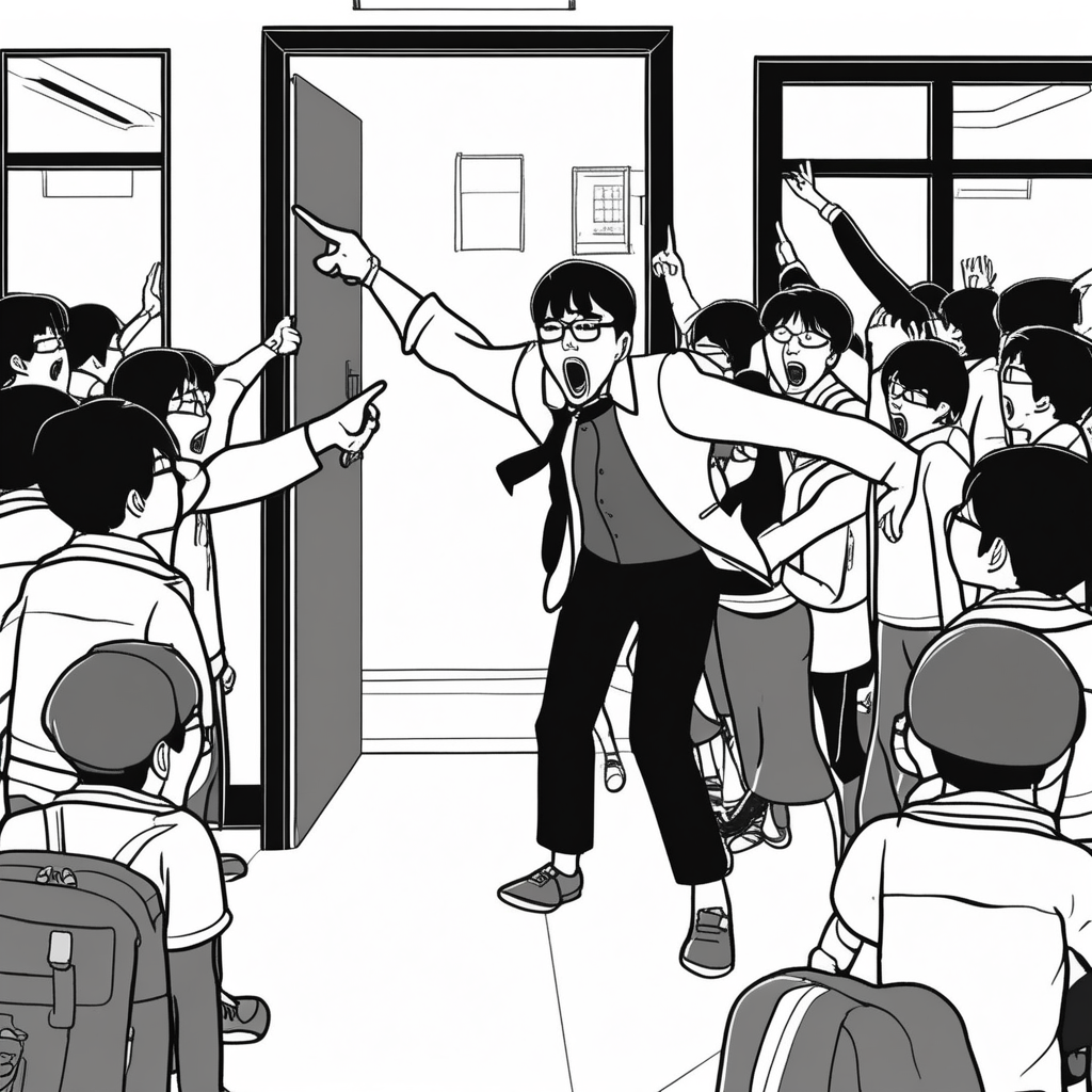 Now get out! The teacher is ejecting students from the classroom!