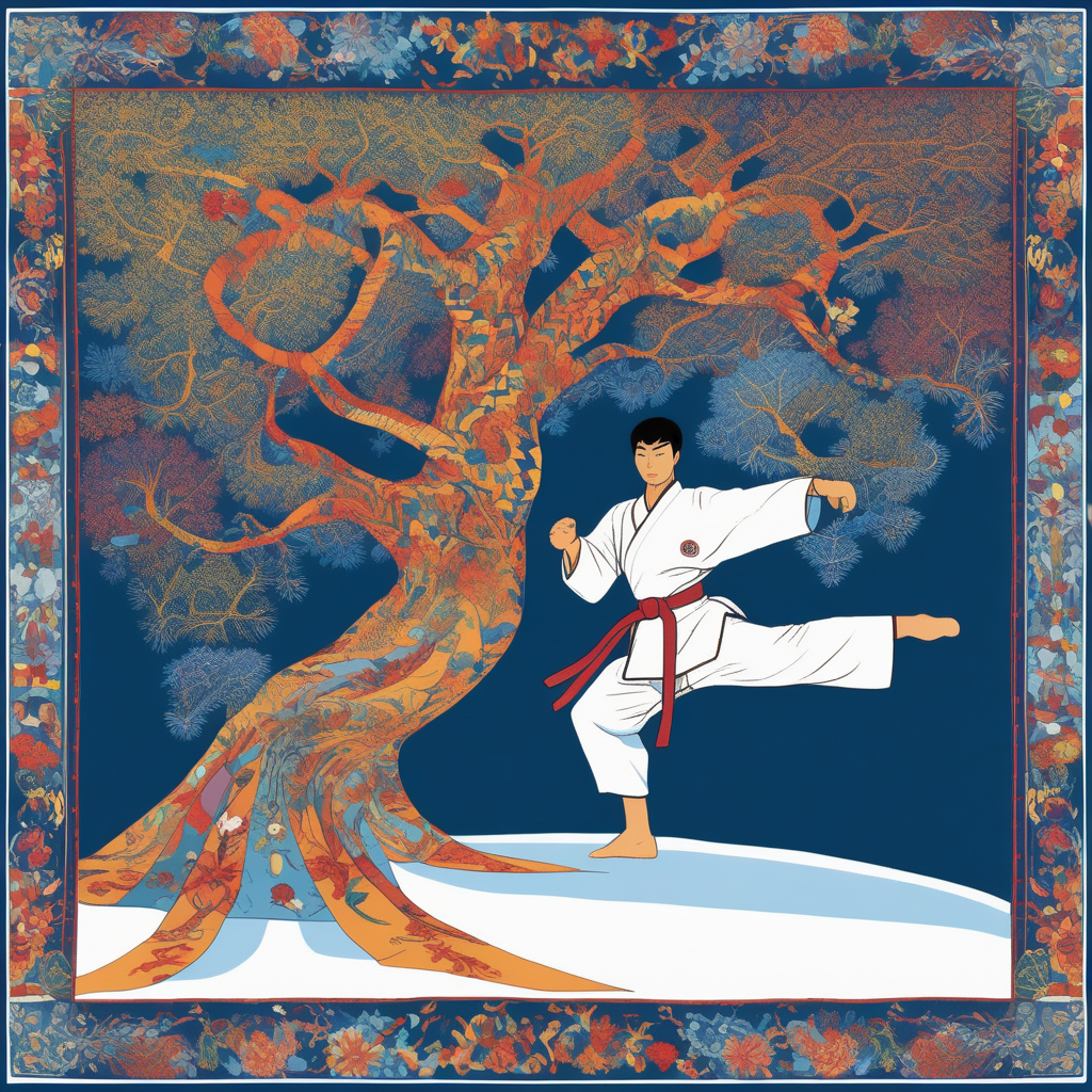 Taekwondo figure skating creates a tree-patterned wall hanging! A masterpiece of intricate decorative textile!