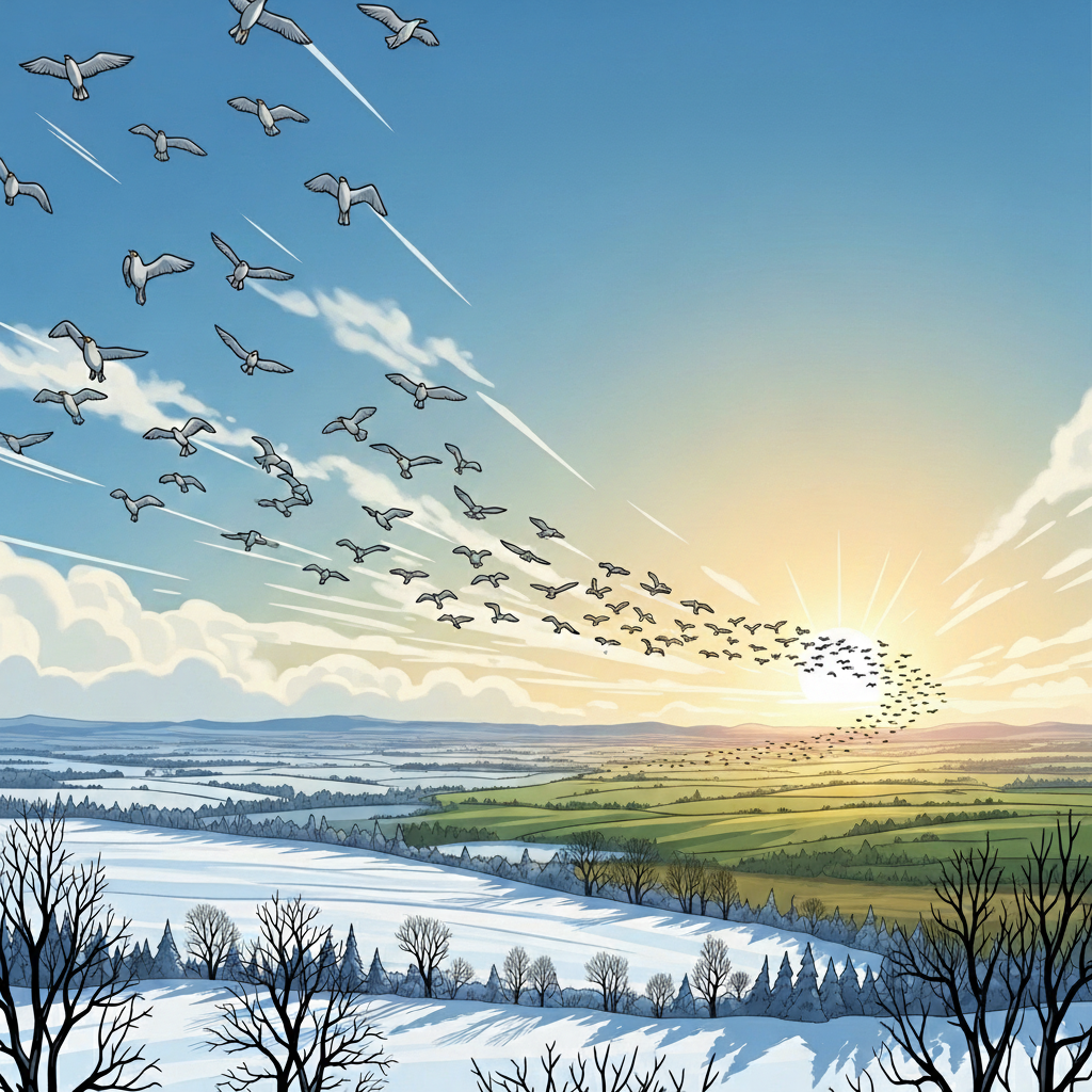새들이 이동하며 구름 글씨를 만들고, 할아버지와 손자가 그 이야기를 나눈다!