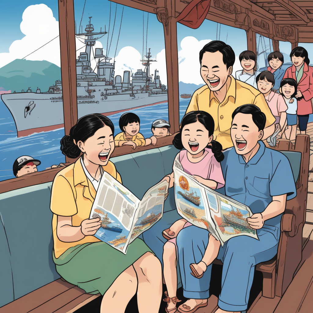 팸(가족)이 플릿(함대) 구경 팸플릿을 보고 있어요!