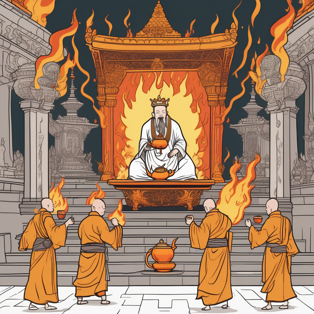 The king burns the temple with fire tea - ultimate impiety!