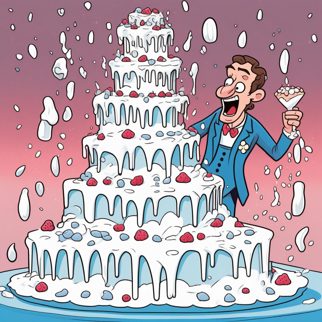 캐스트가 케이크에 설탕을 폭포처럼 쏟아붓고 있어요!