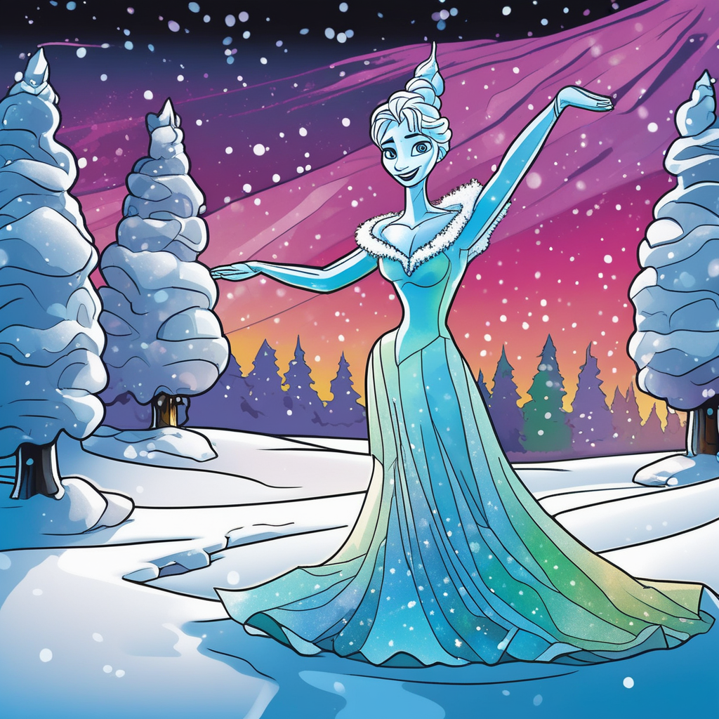 얼어붙은 조각상, 형형색색 오로라가 비춘다!