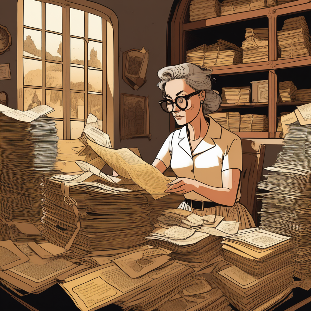 아! 카에서 이브가 역사적인 문서들을 정리하고 있네! 기록 보관의 달인!
