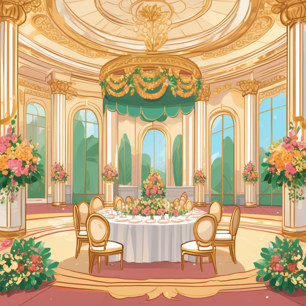 "The palace was bedecked with flags and banners for the royal celebration."