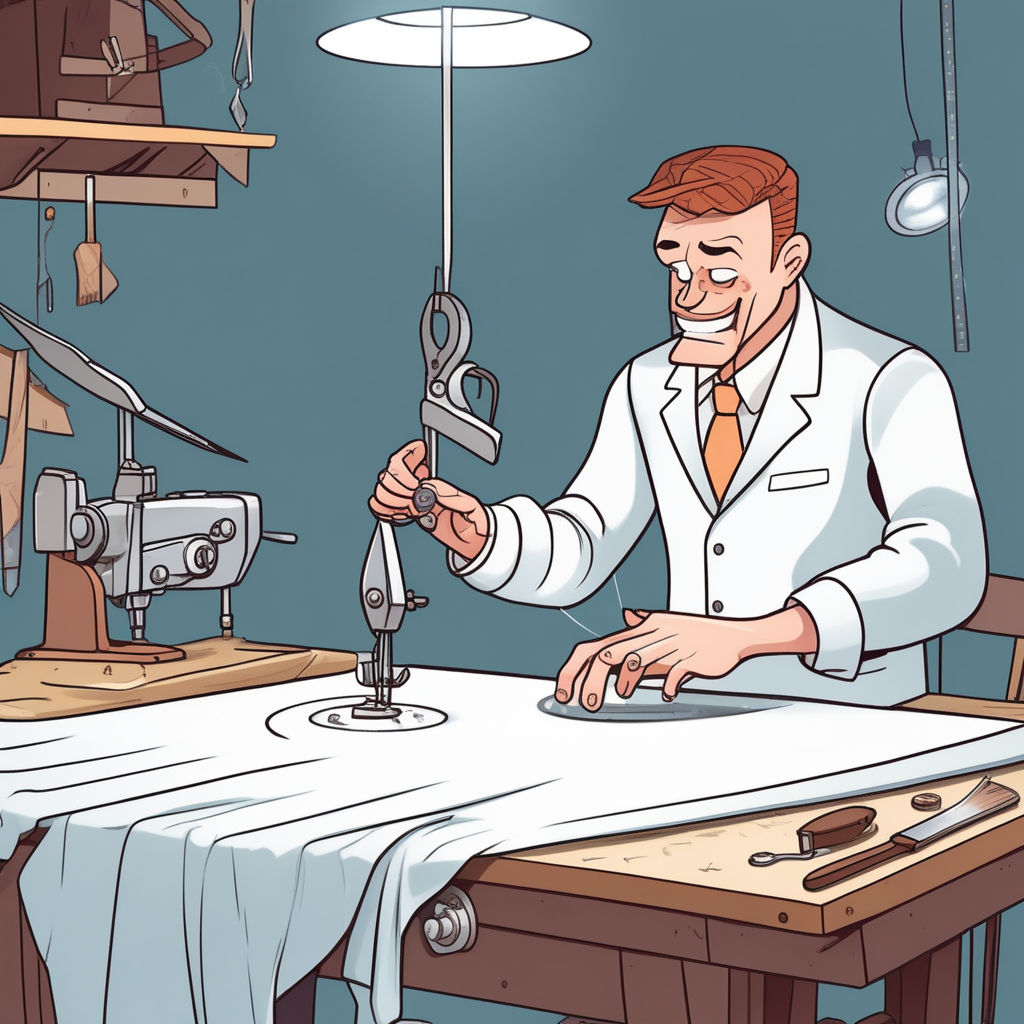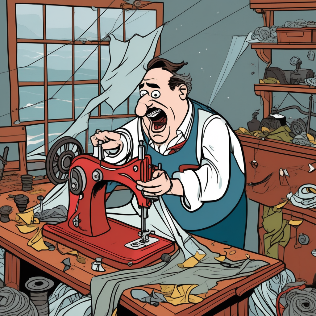 "Tom's attempt at tailoring his own pants resulted in one leg being three inches shorter than the other."