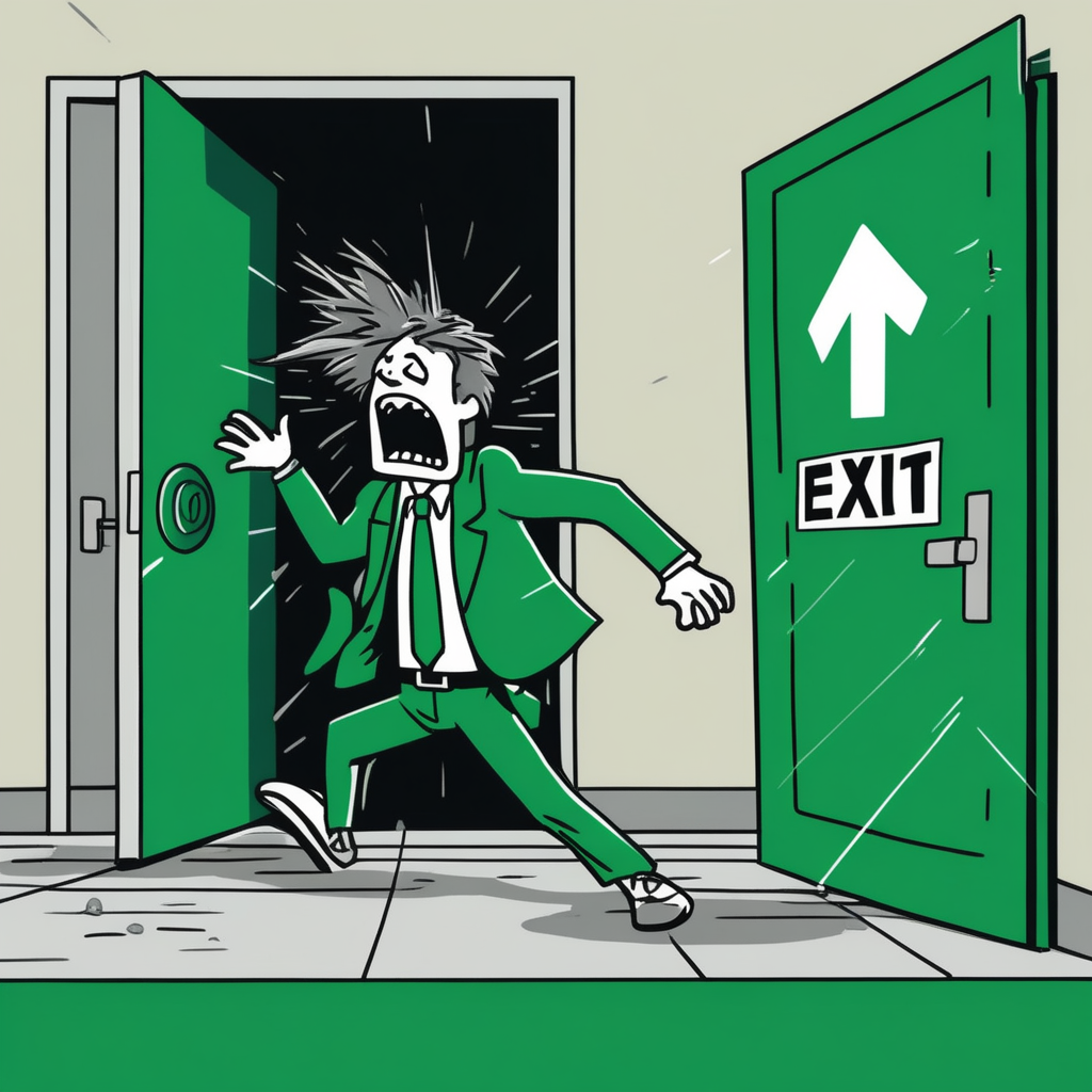 "He wished there was an emergency exit from his boring meeting, just like in airplanes."