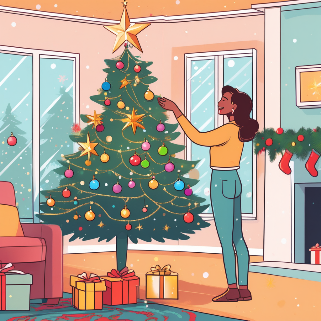 "The Christmas tree was adorned with twinkling lights and homemade ornaments."