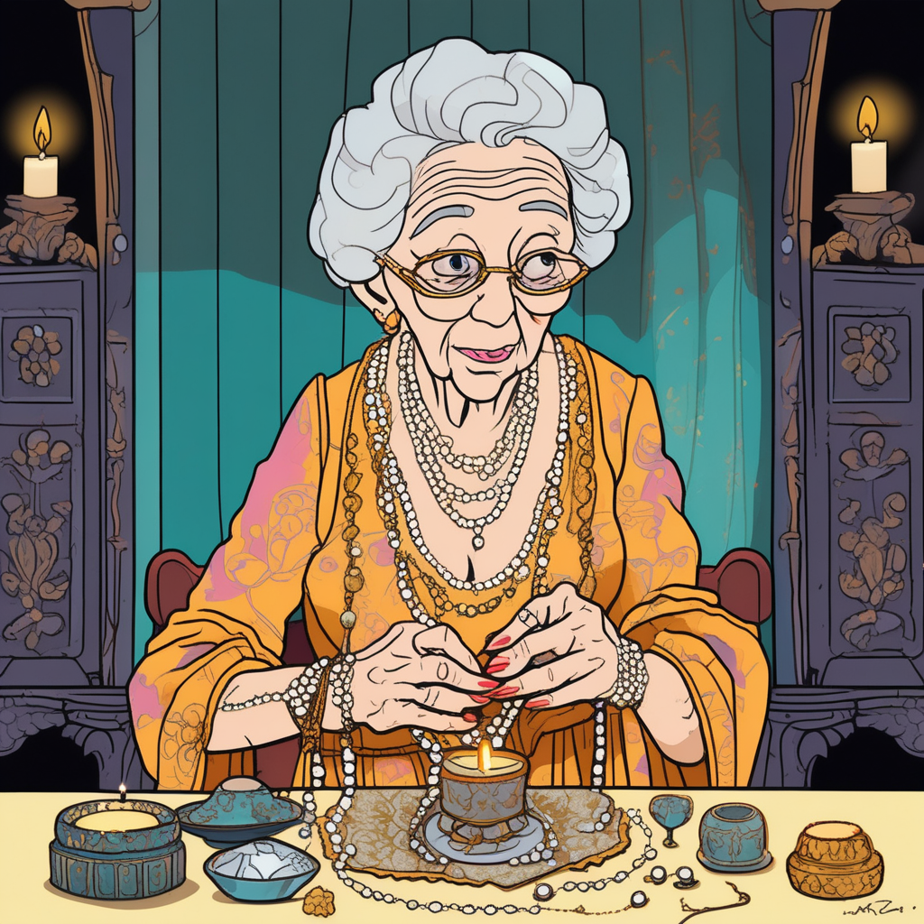 "The bride adorned herself with her grandmother's pearl necklace."