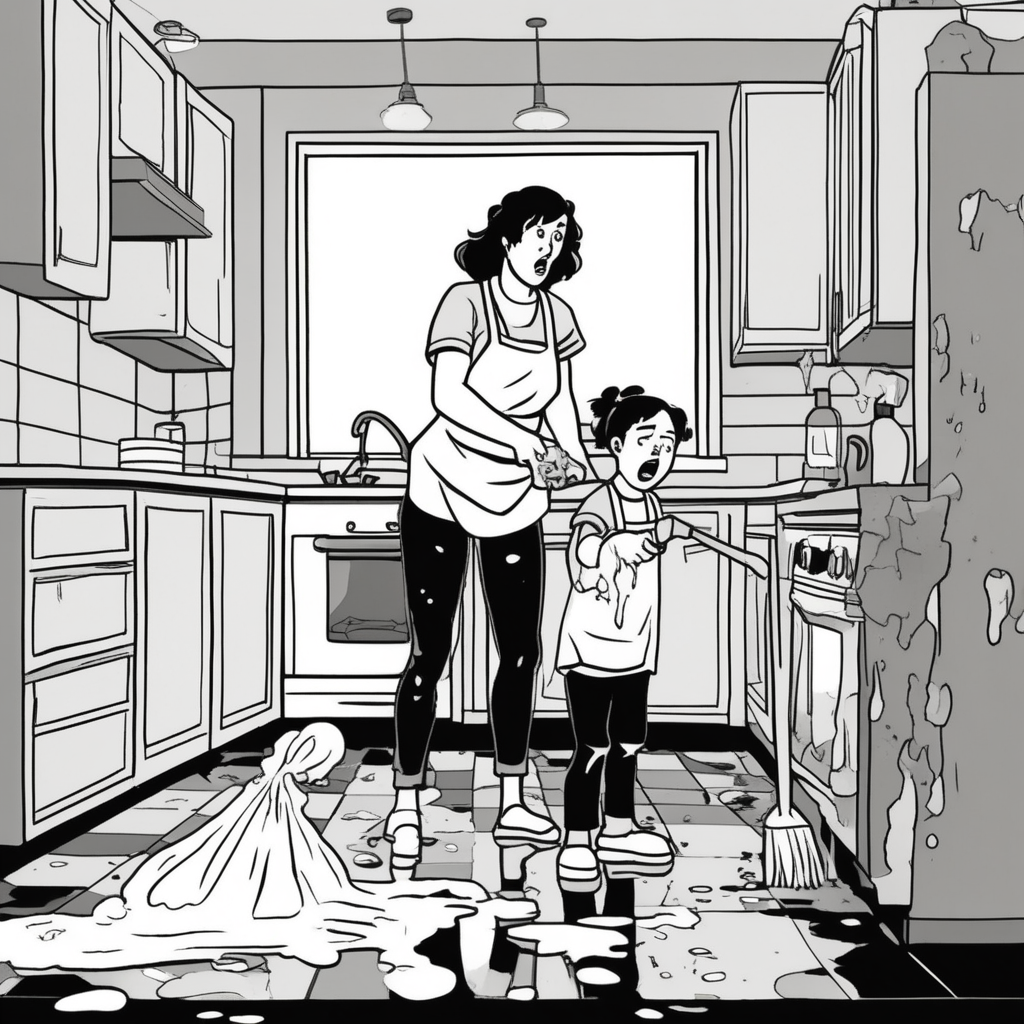 어! 블리치로 거기 토 리해야 해! 엄마의 의무적인 청소 명령!