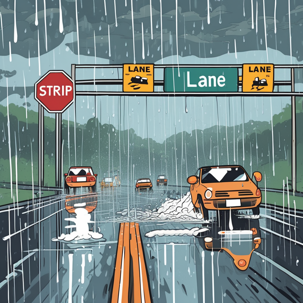레인(차선) 위에 비(rain)가 내려서 차가 미끄러진다!
