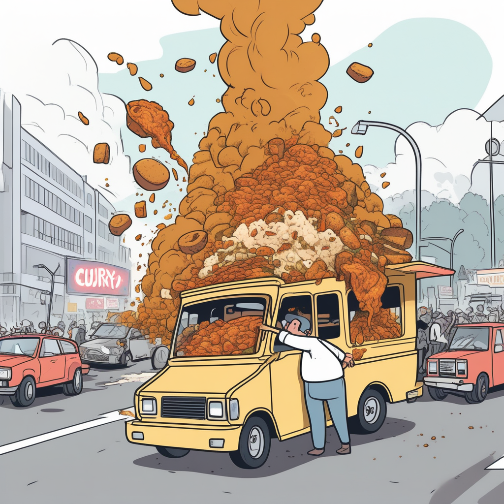 Traffic chaos + curry disaster = tragically spilled!