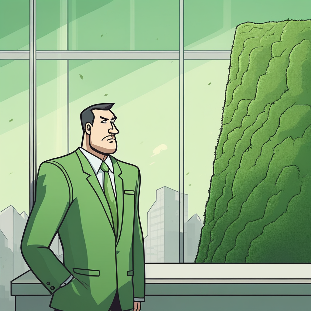 The arrogant boss faces his loss, as moss reclaims all.