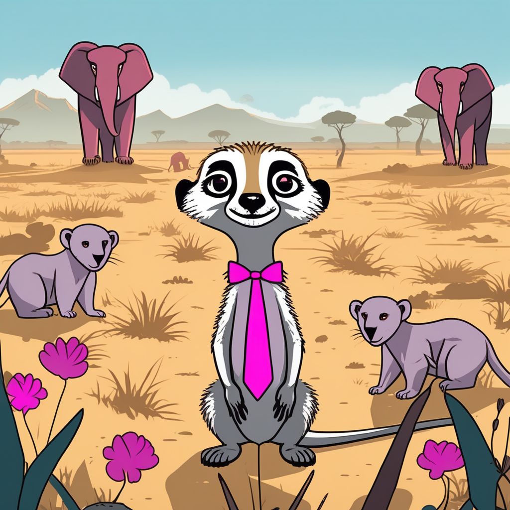 미어캣이 리본만 달고 있네! 거대한 동물들 사이에서 단지 그것뿐!