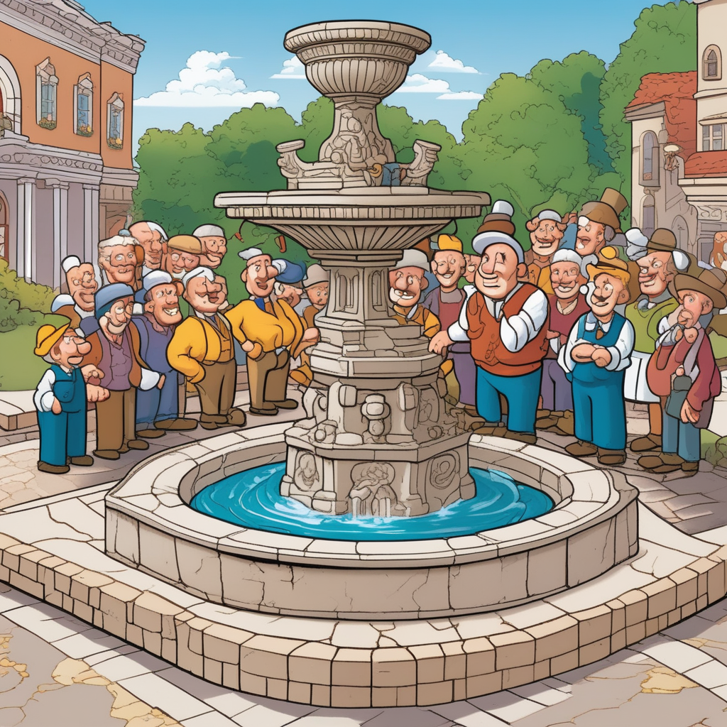 석공이 분수대 앞에서 자신의 실력을 당당히 뽐낸다!
