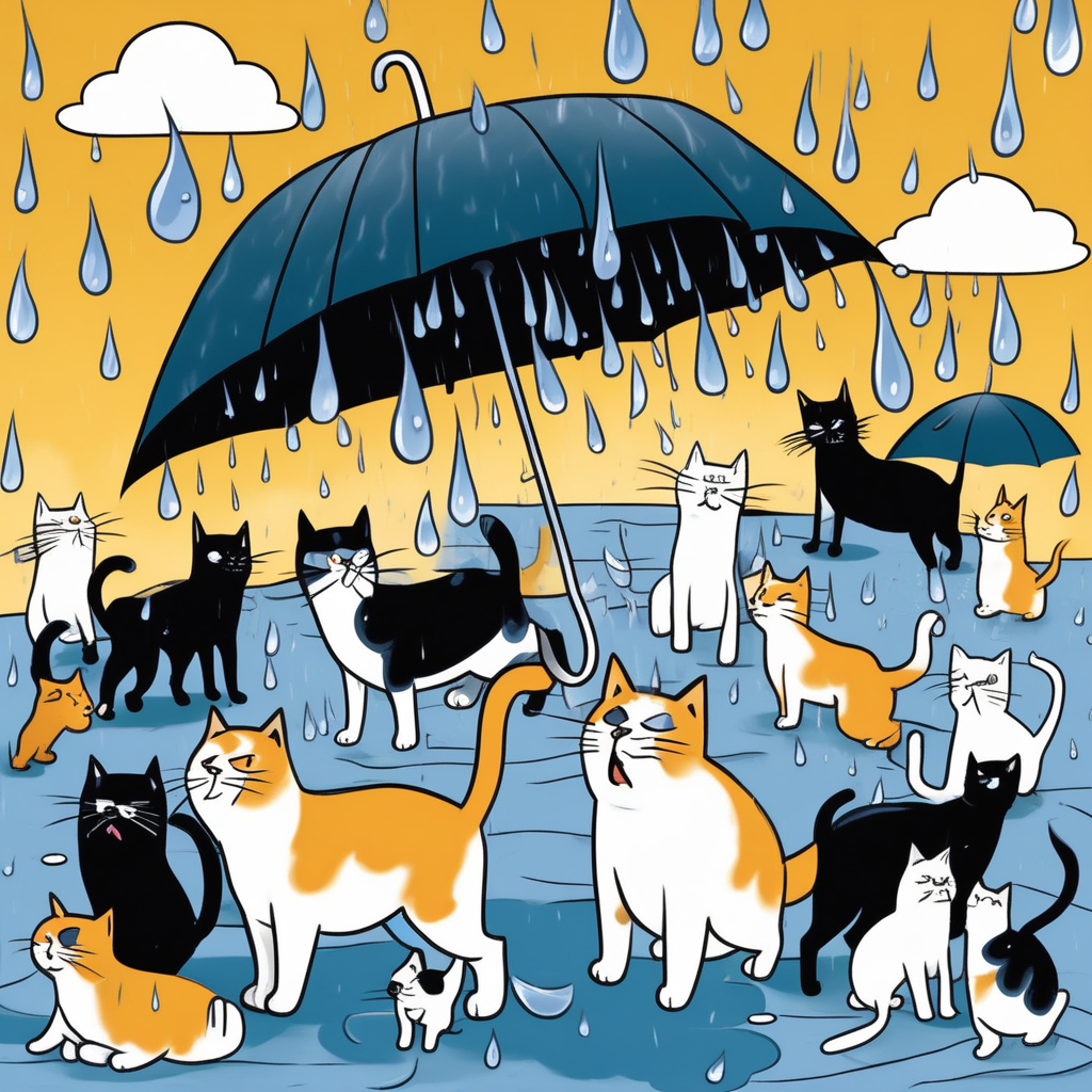17세기 영국에서 시작된 표현으로, 여러 설이 있습니다. 가장 유력한 설은 당시 허술한 지붕에서 살던 고양이와 개들이 폭우 때 지붕에서 떨어졌다는 이야기입니다. 또 다른 설은 북유럽 신화에서 개는 바람의 신, 고양이는 폭풍의 상징이었다는 것입니다.